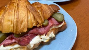 - Maria Merengue – Croissant NY Style: Nosso croissant de fermentação natural, cream cheese, picles e Pastrami. Pães produzidos na casa, com manteiga Président, trigo francês e fermentação natural. R$ 19,90 (Individual). E Croissant au Jambon: Nosso croissant de fermentação natural, molho bechamel feito por nós, queijo mussarela, presunto Royale e parmesão para gratinar. Pães produzidos na casa, com manteiga Président, trigo francês e fermentação natural. R$ 19,90 (Individual)