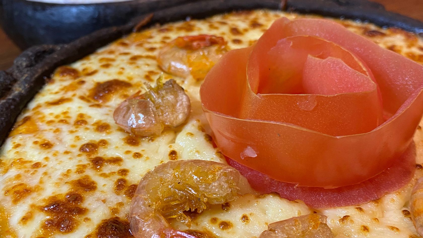 - Encontro Pizzaria – Tentação de Camarão: Delicioso camarão cremoso, feito com Catupiry original, com uma camada de queijo derretido embaixo e queijo gratinado por cima. R$99,90 (serve 2 pessoas). E Pizza de Calabresa: Mussarela derretida, calabresa fininha, cebola e azeitona. Um clássico cheio de sabor! R$69,90 (serve 4 pessoas)