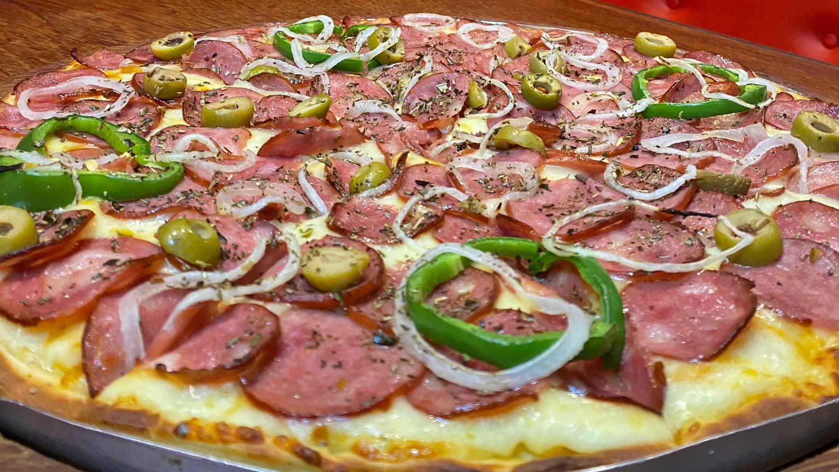 - Mega Burguers – Combo Pizza + Refri: O combo contempla qualquer sabor de pizza grande da casa + refrigerante de 1,5L. R$69,90 (serve 4)