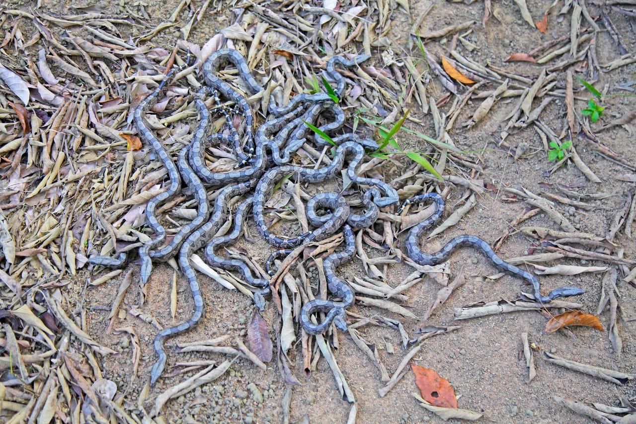 No total, 43 filhotes de cobra, da espécie jiboia, foram resgatadas em um sítio particular, localizado na Avenida Augusto Ruschi, em Balneário de Carapebus.