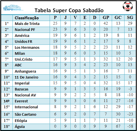 Veja o resultado da décima rodada: Internacional 0x5 Anhanguera; Etiópia 1×3 Unidos FR; Mais de Trinta 7×5 Imperial; Los Hermanos 2×2 11 de Janeiro; Bazucas 1×1 ABC; São Caetano 3×2 Águia; Nacional PF 0x0 América; Everest 3×1 Nacional AV; Unidos em Cristo 2×1 Milan.