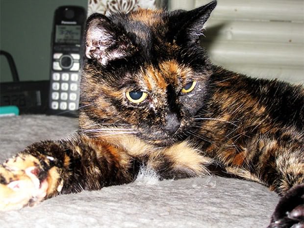 A gata, apesar da idade, tem boa saúde. Sua dona conta que ela enxerga e ouve bem, e sobe escadas sem ajuda.