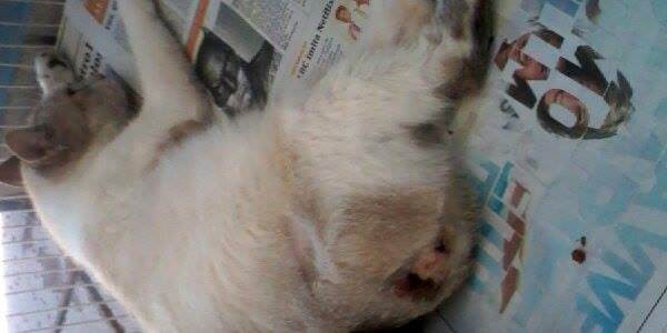 Uma gata foi brutalmente maltratada em Vila Velha. Mardoll, nome dado a felina pela entidade de proteção animal que a resgatou teve seu rabo arrancado e foi espancada até sua perna ser quebrada em várias partes.