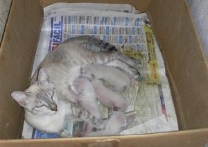 Estes quatro bebês estão na portaria de um condomínio em Jardim Limoeiro, na Serra. São quatro machos e acabaram de nascer.