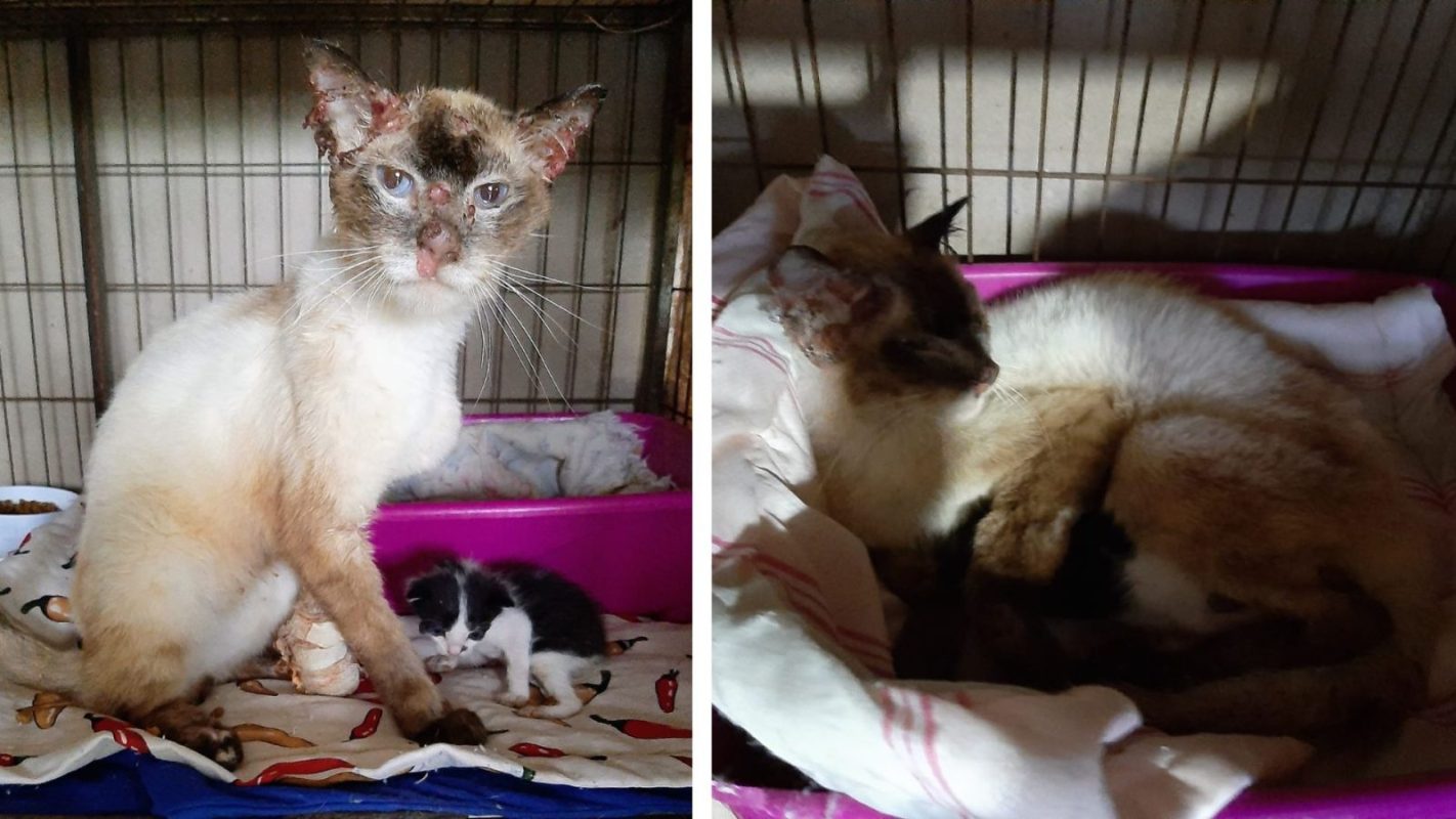“Sabe quando as lições de amor e compaixão dada por eles, não param de surpreender? Ali começou a saga de remédios para esporo, e alimentar o máximo a “mamãe ” que apesar de tão fraca e ferida cuidava e amamentava seu bebê. Além de muita magrinha, estava com a respiração horrível, precisava se alimentar, e esse foi meu foco, até que minha amiga veio e viu que eram dois machos”.