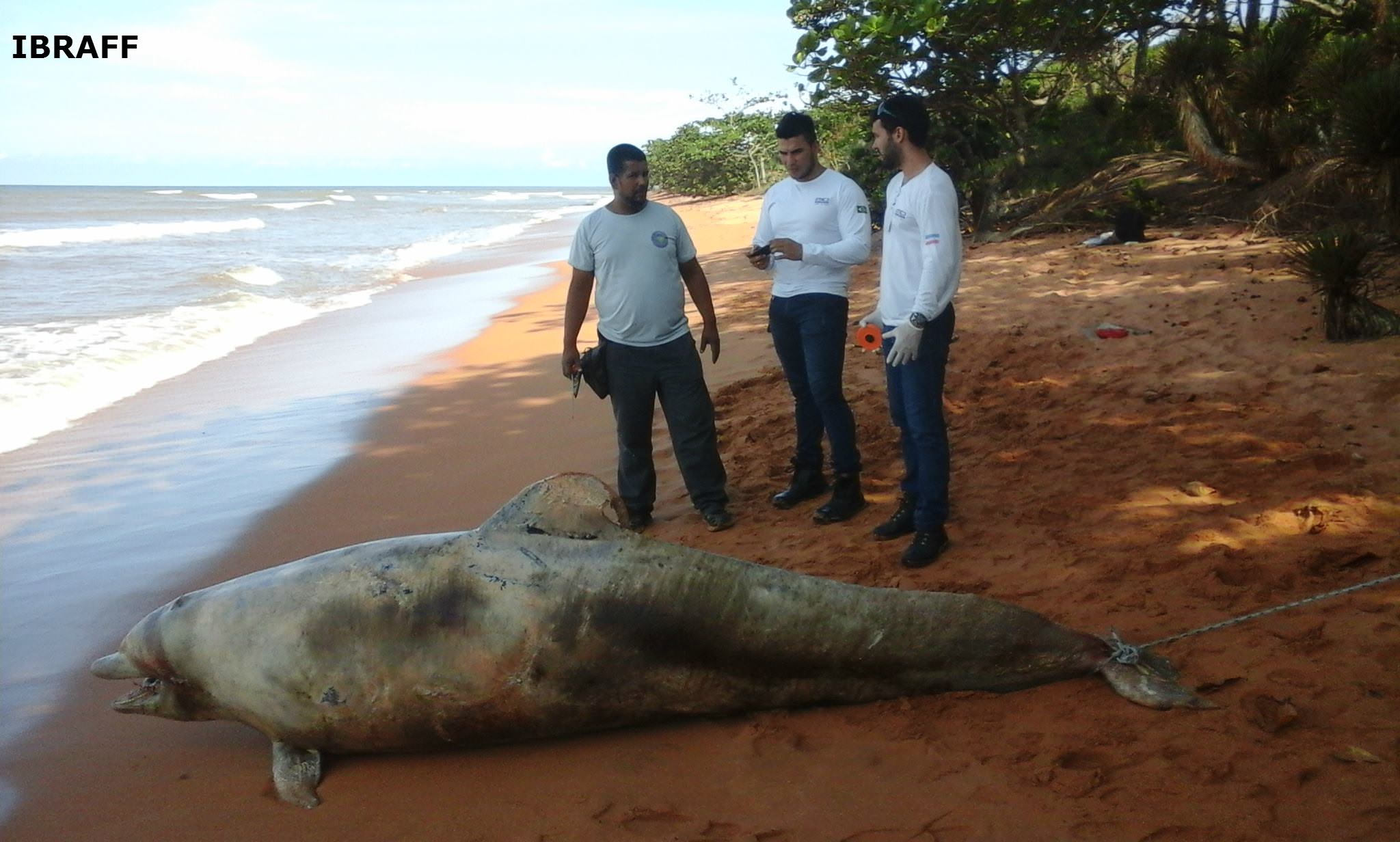 Na tarde desta quarta-feira (29) na praia de Costa Bela, próximo a Jacaraípe na Serra, um golfinho da espécie nariz-de-garrafa foi encontrado morto. O animal é um macho, medindo 3,35 metros e pesando entorno de 300kg. O animal foi achado através de uma ocorrência atendida pelo Instituto Brasileiro de Fauna e Flora (IBRAFF), que juntamente com a empresa CTA estiveram no local para apurar a ocorrência.