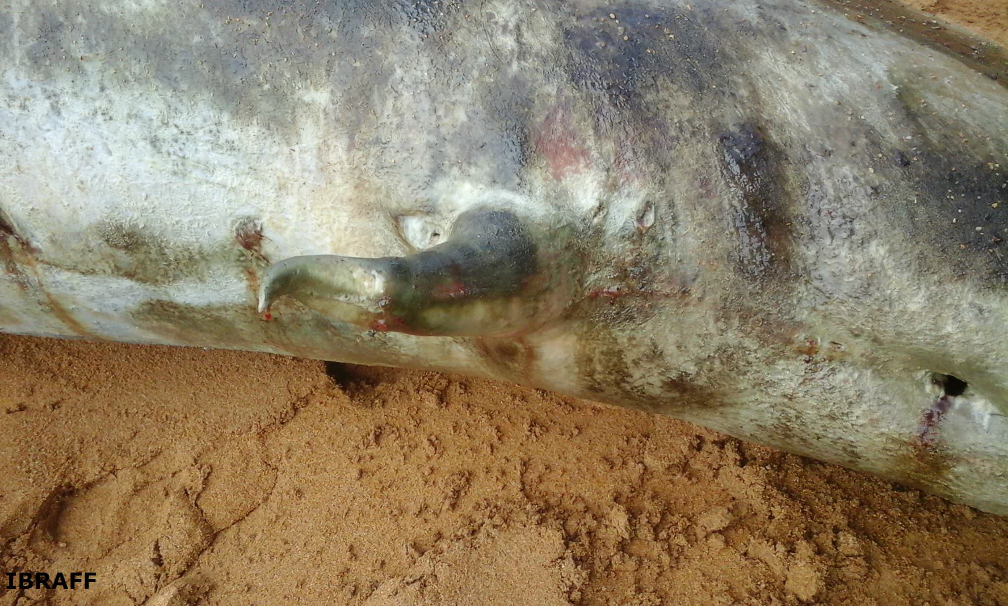 Segundo o ambientalista Claudiney Rocha, do IBRAFF, “Não é muito comum encontrar esta espécie de golfinho por aqui, geralmente o boto cinza é mais visto na região.” O animal foi encontrado com marcas de arranhões e sinais de ter agarrado em alguma corda ou rede de pescador.