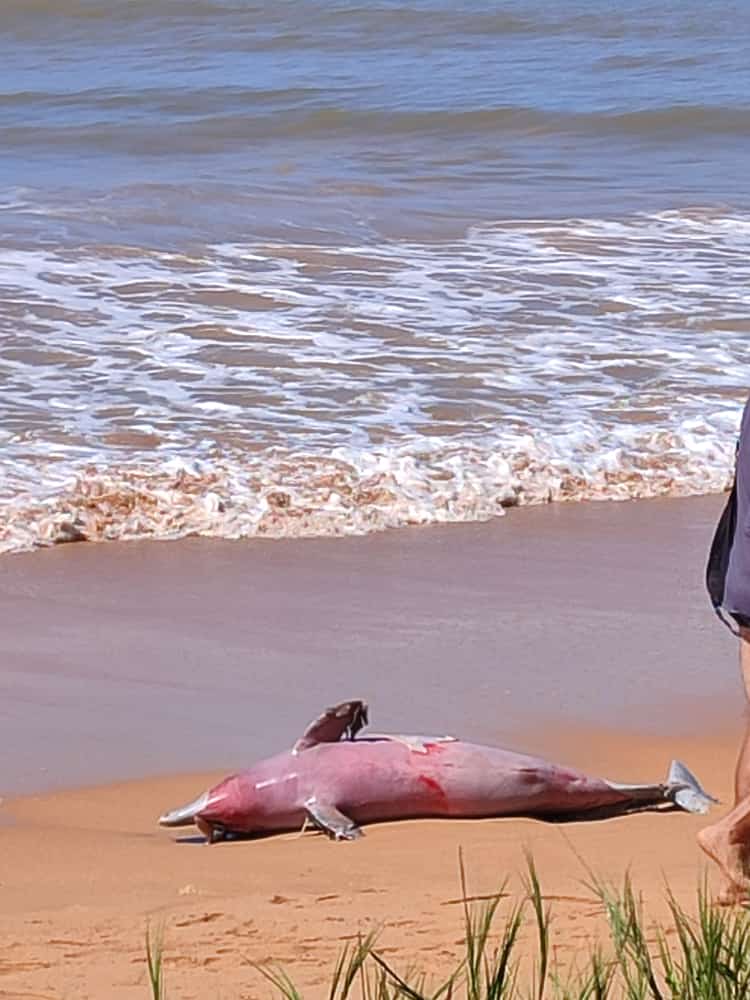 Um golfinho foi encontrado morto na praia de Ponta dos Fachos, em Manguinhos, na Serra. O animal, achado por moradores na manhã desta sexta-feira (17), não apresentava marcas de violência.