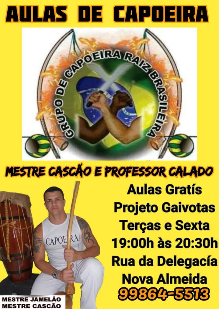 O grupo de capoeira Raiz Brasileira, de Nova Almeida, está oferecendo aulas de capoeira de graça para todas as idades na comunidade.