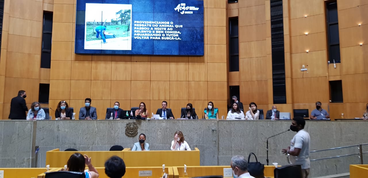 A cadela Camila foi levada ao plenário e em nenhum momento estranhou as pessoas no recinto, contrariando a fala do depoente.