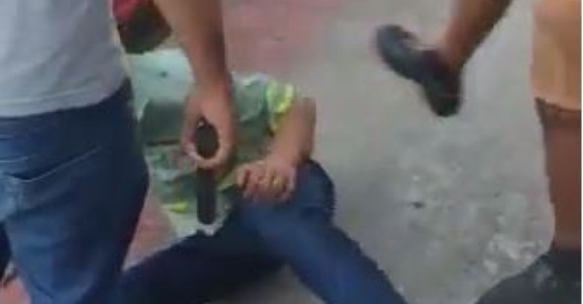 Um dos suspeitos fugiu, deixando o companheiro para trás. Enquanto a PM não chegava ao local, a população agrediu o homem que não conseguiu fugir com diversos chutes, pisões e pontapés. Chama a atenção que o homem agredido estava vestindo uniforme de empresa.