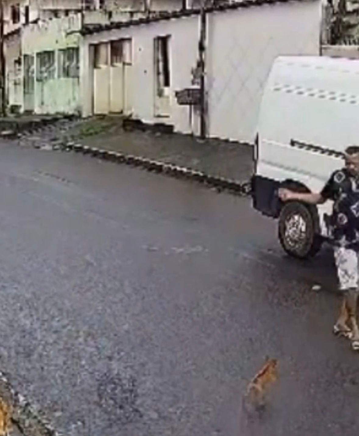 Um homem, ainda não identificado, foi flagrado jogando uma pedra em um cachorro de pequeno porte, da raça Pinscher, no bairro Divinópolis, na Serra, no Espírito Santo. O caso aconteceu na manhã deste sábado (18) e foi registrado por câmeras de segurança.