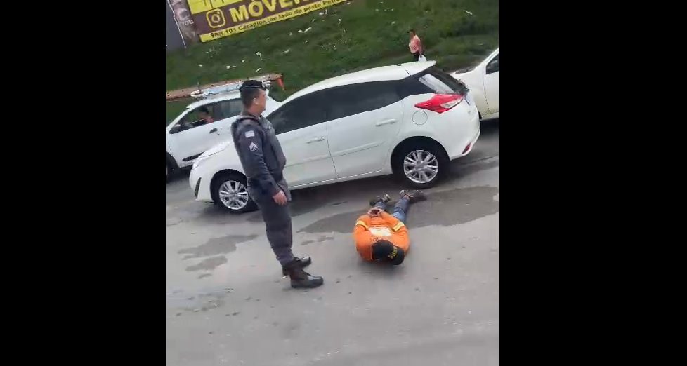 A ação rápida dos policiais e a prisão do criminoso chamou a atenção de populares que passavam pelo local que filmaram o momento da apreensão do bandido.