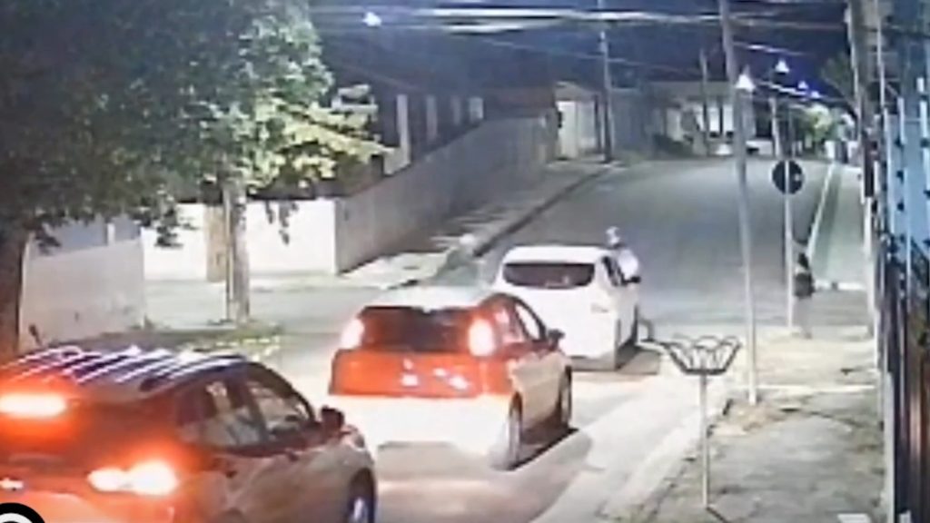 Na noite do último sábado (29), três homens abordaram e roubaram um carro em um cruzamento do bairro Parque Jacaraípe, na Serra. Em imagens gravadas por câmeras de segurança é possível observar os homens rendendo o veículo, em seguida, o motorista e uma mulher saem, enquanto os assaltantes entram no veículo.