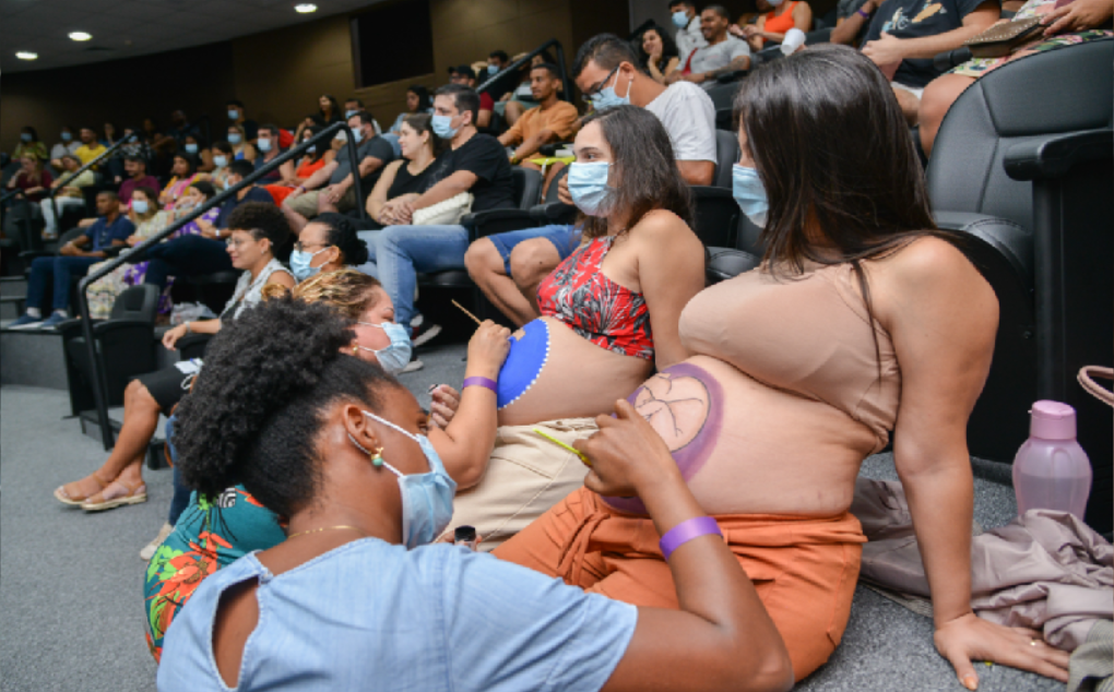 Este é um encontro para o acolhimento, aprendizado e a troca de experiências entre as mamães e a equipe multiprofissional.