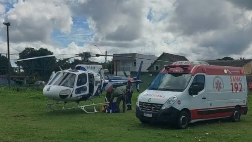 O Samu foi acionado, mas ao chegar no local, precisou pedir apoio de um helicóptero da Notaer, que fez o socorro e levou o idoso para o Hospital Jayme dos Santos Neves, em Morada de Laranjeiras, também na Serra.