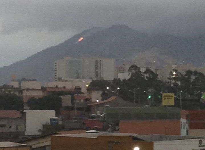 De acordo com testemunhas, o fogo teria começado após um raio atingir o morro no final da tarde desta quinta- feira (12), no trecho que fica próximo ao Terminal Industrial Multimodal da Serra (TIMS).