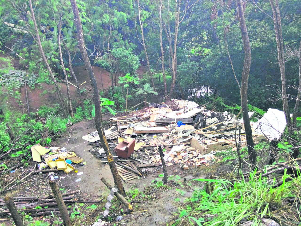 Depois da demolição da casa de alvenaria de 35 m2 construída numa área de preservação, a dor de cabeça agora é a recuperação do talude do aterro sob a rodovia ES 010 em Portal de Manguinhos, nos fundos da Faculdade UCL.