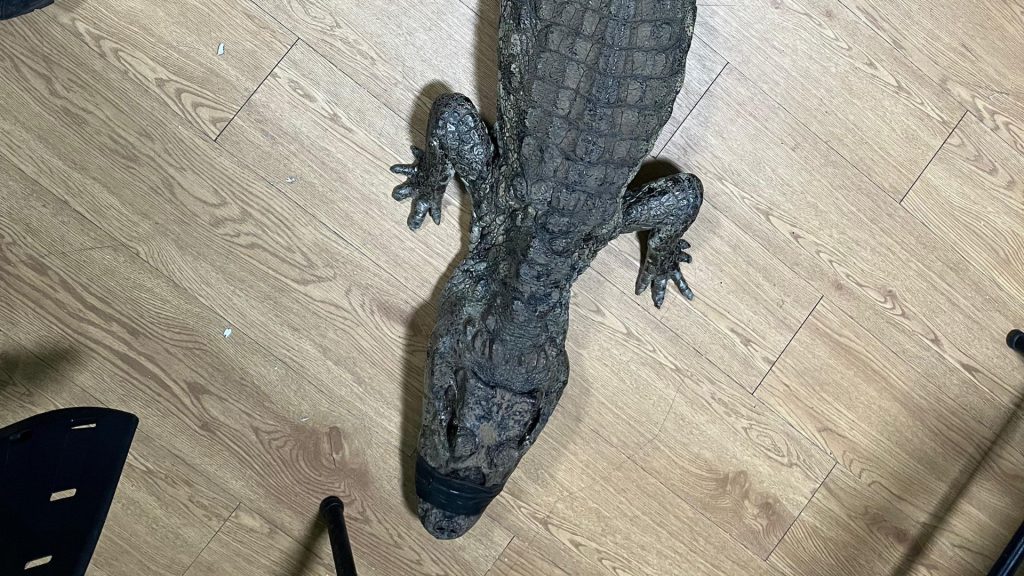 O animal, chamado de Vampiro, pesa 4,5 quilos e mede 113,5 centímetros de comprimento. Ele apresentava escoriações no focinho, crânio, membros e ouvidos, e foi imediatamente levado para tratamento.