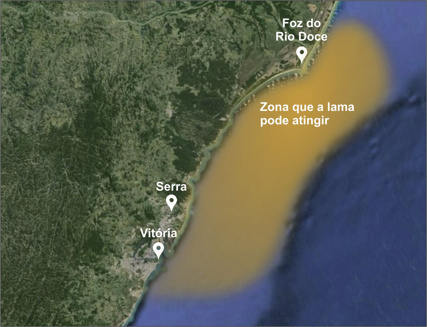 A lama de minério que vazou após o rompimento de duas barragens da Samarco (Vale + BHP Billiton) em Mariana que vem devastando o rio Doce vai parar no mar. Depois disso deve se dispersar por parte do litoral capixaba, entre a foz do rio em Linhares e Vila Velha. E isso inclui todos os 24 km de litoral da Serra, segundo especialistas.