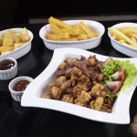 Entre as porções estão bolinho de bacalhau, franguinho, bolinho de queijo com molho de goiabada e a carne de sol na manteiga de garrafa com aipim.