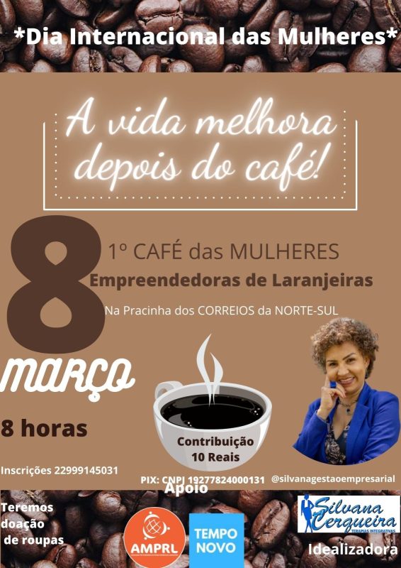 Na próxima terça – dia 08 de março, Dia Internacional da Mulher, acontecerá em Laranjeiras, na Serra, um café da manhã especial voltado para mulheres empreendedoras.
