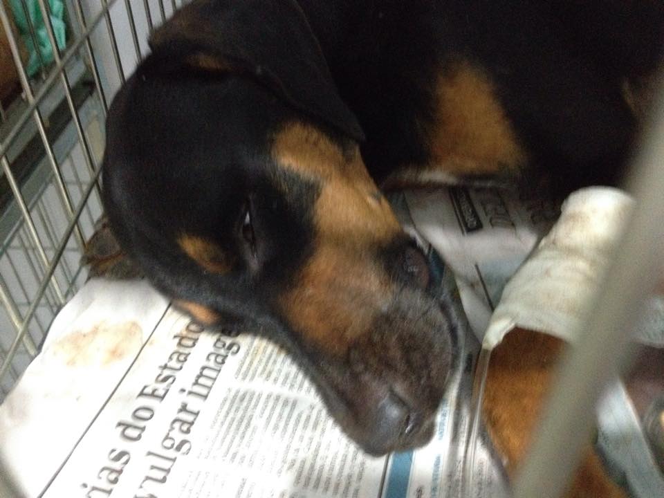 Foi resgatado pela protetora Solange Holzmeister e está recebendo atendimento veterinário no Mvet Consultório Popular, que fica no mesmo bairro.