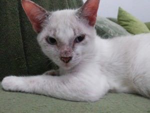 Ele hoje está lindão, gordinho e sem sarninha. Não gosta de colo, mas é muito carinhoso e dengoso. Educado, usa a caixinha de areia e é muito brincalhão.