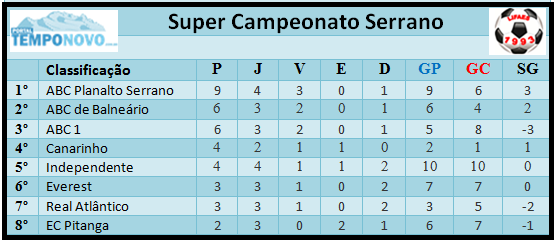 A partida que tinha o líder Planalto Serrano como favorito, não foi como esperada. O ABC 1, surpreendeu e venceu por 2×0 o líder, assumindo a terceira colocação da competição. E a goleada da rodada ficou por conta do Everest, que fez 4×1 em cima do ABC Balneário em São Geraldo, que saiu da lanterna para a sexta colocação.