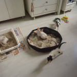 São três fêmeas e dois machos. Eles estão em Vitória com a protetora Neida Vaz. Quem adotar um dos filhotes a castração a baixo custo é garantida.