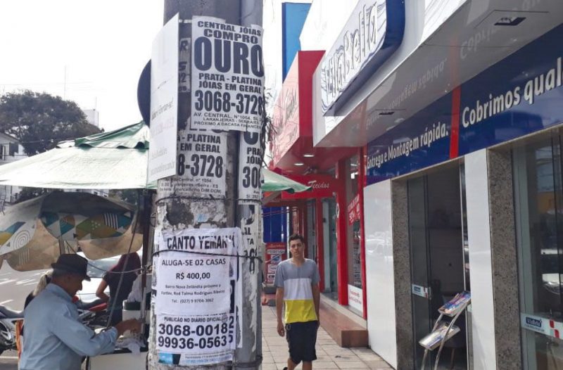 Com autorização pode? Um leitor do TN enviou uma foto que mostra um poste de iluminação cheio de anúncios fixados. O popular reclama que a situação se repete em toda cidade e pediu uma explicação da prefeitura para saber qual penalização os vândalos recebem. A assessoria de comunicação da Prefeitura da Serra disse para a coluna que é proibida a fixação de cartazes em pontos de ônibus, postes e monumentos públicos, sem autorização prévia. A pergunta que fica é: será que com autorização pode?
