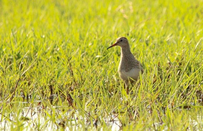 No último domingo (22), a ave da espécie Maçarico-de-colete (Calidris Melanotos) foi flagrada na região dos alagados do Mestre Álvaro, pelas lentes do fotógrafo Douglas Negrini, morador de Jardim Camburi, que faz parte do Clube de Observadores de Aves do Espírito Santo (COA-ES).