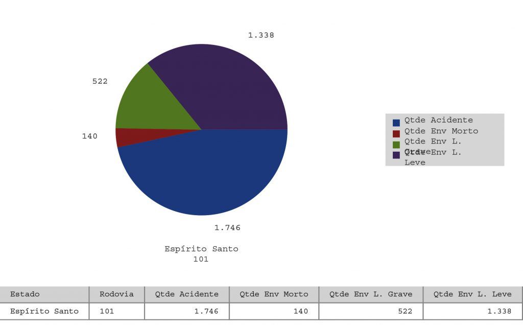 Em 2016, foram 2.404 ocorrências, sendo 131 vítimas fatais; 919 feridos graves e 1.748 feridos leves.