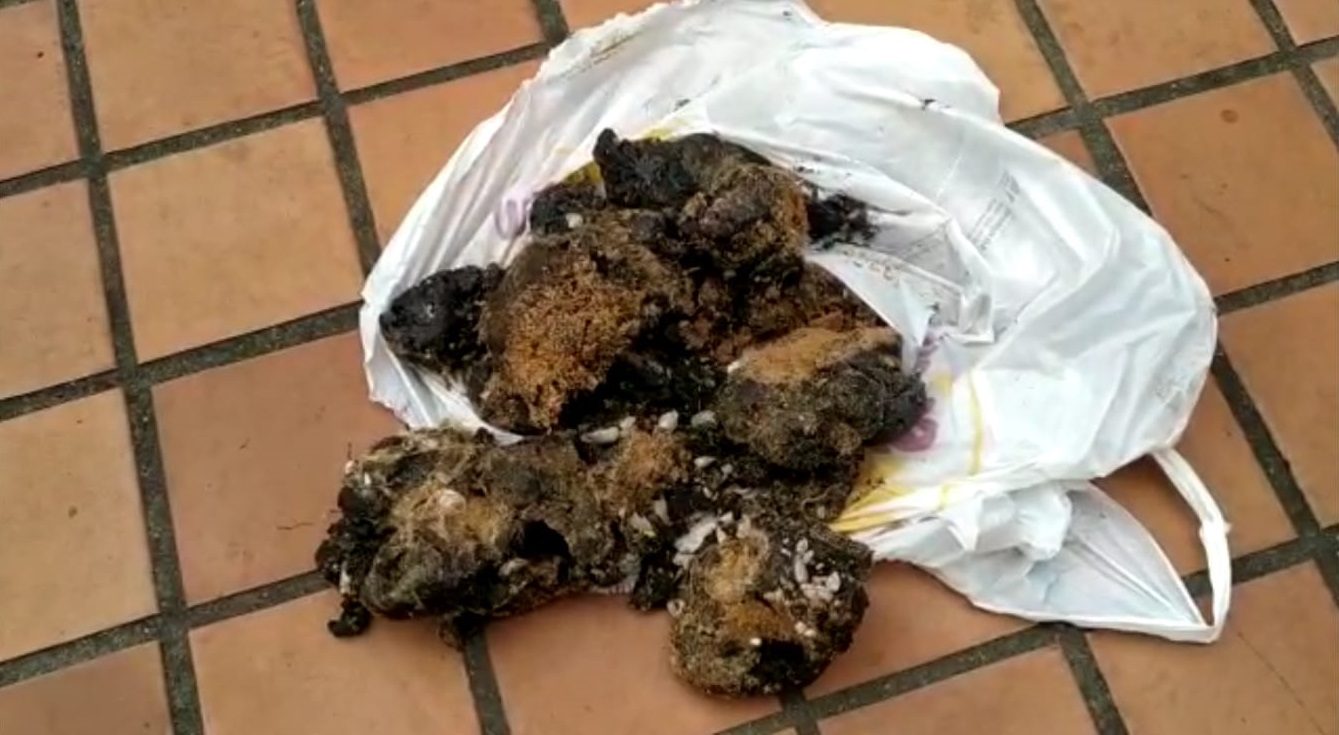 Um vídeo mostrando o material foi feito por um morador que acionou a Prefeitura da Serra. No vídeo, ele fala que o aglomerado encontrado na região, tem pelo menos 1 quilo e meio. “Este material foi encontrado na Praia da “Curva da Baleia”, hoje pela manhã, pelo meu vizinho e pescador Helinho. Por ter mais acesso, ele me entregou o material encontrado. Como mostra o vídeo, borras de óleo formando gomas escuras e com certeza, com grau de resíduos tóxicos. Procuramos juntos sermos fiscais assíduos da nossa praia”, disse o morador Fábio Ferrari.