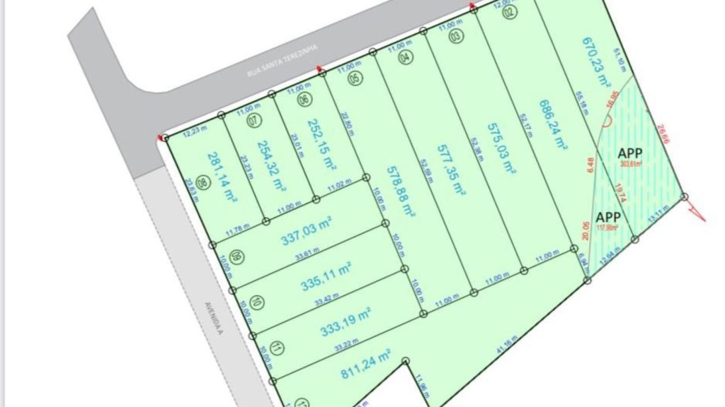 O primeiro empreendimento é um projeto residencial em uma área de 6.000 metros quadrados, localizada na rua Santa Terezinha, que está na fase final de terraplenagem. A empresa responsável, SMS, aprovou o desmembramento do terreno em 12 lotes, todos já registrados em cartório.