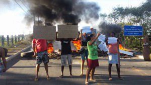 Populares fecharam a rodovia ES 010 com pneus e fogo na altura da ponte Flodoaldo Borges Miguel, do lado de Fundão.
