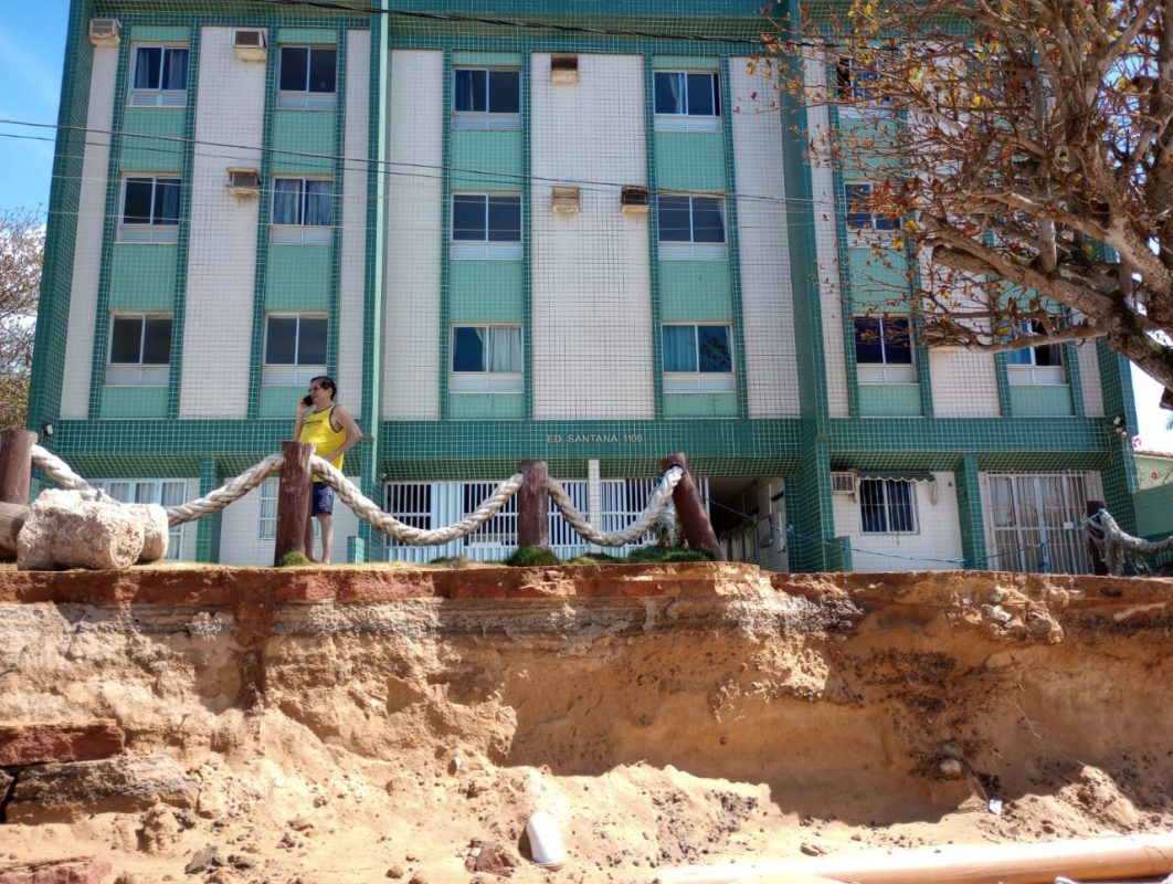 Logo na frente, existe um condomínio residencial – Edifício Santana – que possui dezenas de famílias. Nas últimas semanas, o carro de um dos moradores quase cedeu para dentro da faixa de areia da praia, por conta da queda de uma parte da avenida.
