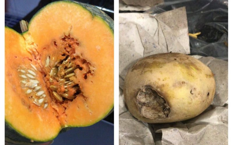 Batata e abóbora podre e com bicho. Uma família de Jardim Limoeiro que tem filho matriculado numa escola da rede municipal e depende da ajuda do governo para auxiliar na alimentação das crianças recebeu da Prefeitura da Serra um kit contendo verduras e legumes, mas para surpresa da mãe parte do que foi entregue estava estragada, inclusive com larvas (conforme vídeo no final da matéria).