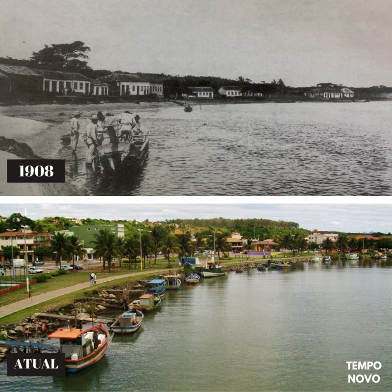 Foto 03 – Esta vista, tomada nas proximidades da região onde se encontra a atual ponte que une Nova Almeida e Praia Grande, registra de forma eficaz o antigo desenho do Rio Reis Magos. Toda a região do rio vista na fotografia sofreu aterro na década de 50 para o alargamento da via beira mar.