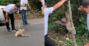 Um bicho-preguiça foi salvo no início da tarde deste domingo (15) por ambientalistas da Serra....