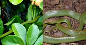 Uma cobra da espécie ‘Philodryas olfersii’ acabou causando alvoroço entre moradores da comunidade de Manguinhos,...