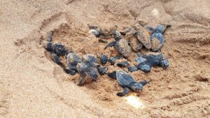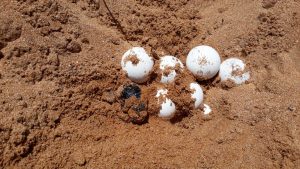 Mesmo depois de ser vandalizado o ninho de tartarugas da espécie Caretta caretta, em Jacaraipe,...