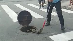 Uma cobra gigante – da espécie popularmente conhecida como jiboia – foi encontrada em uma...