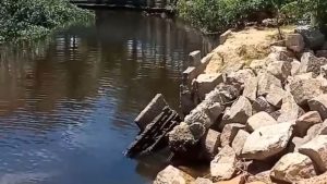 A suspeita de descarte ilegal de entulho em um córrego que deságua nas praias de...