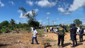 Um grupo de pessoas foi impedido de invadir uma área pública de cerca de 3...