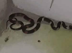 Uma cobra da espécie ‘Oxyrhopus petola’ (falsa coral) acabou causando alvoroço entre moradores da comunidade...