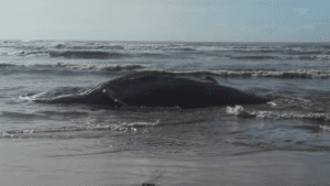Na manhã desse sábado (13) mais uma baleia apareceu morta no litoral da Serra; dessa...