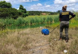 A margem da lagoa Juara que foi atingida por aterro em decorrência da obra de...