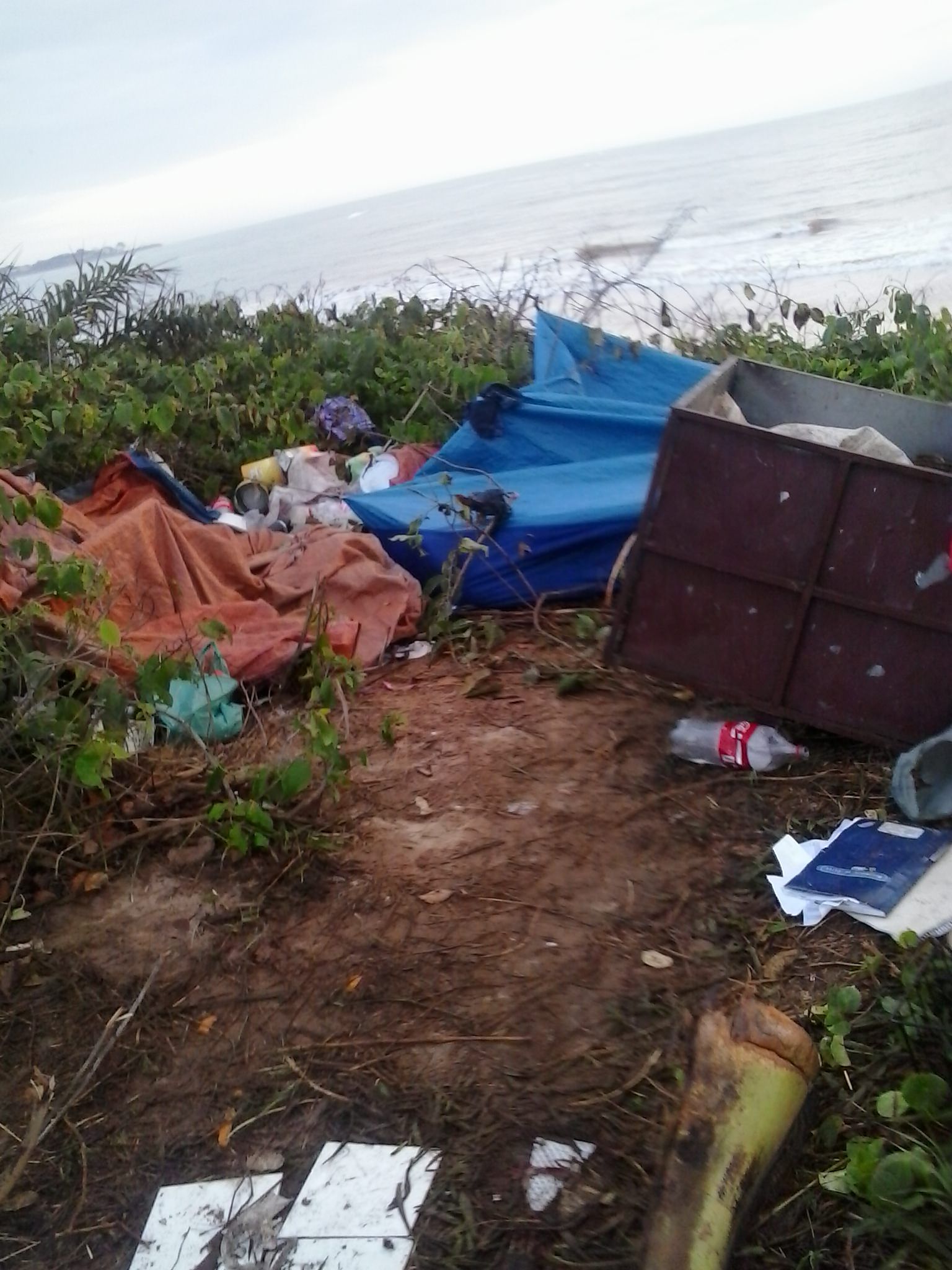 Segundo uma comerciante da região que não quis se identificar a situação já acontece há algum tempo. “Já falamos sobre isto várias vezes com a associação de moradores que disse que não poderia fazer nada. Mas na minha opinião não pode continuar assim. Esta em área de restinga. Ela já fez acampamento lá e tudo. Tem fogão e a sujeira também é muito grande. Nossa praia está abandonada”.
