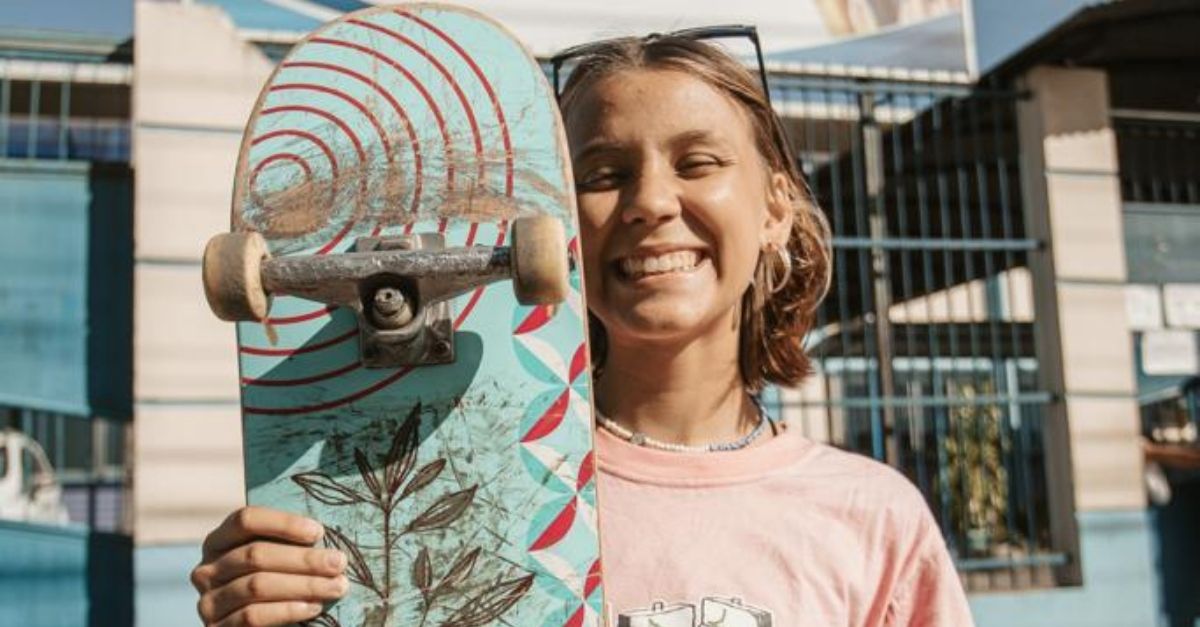 A Emef Iolanda Schineider recebeu na última quinta-feira (19), uma visita especial. Ana Clara Araújo, de 15 anos, moradora de Porto Canoa, na Serra, voltou a escola onde estudou desde a 1ª série para dividir um pouco de sua experiência como skatista profissional.